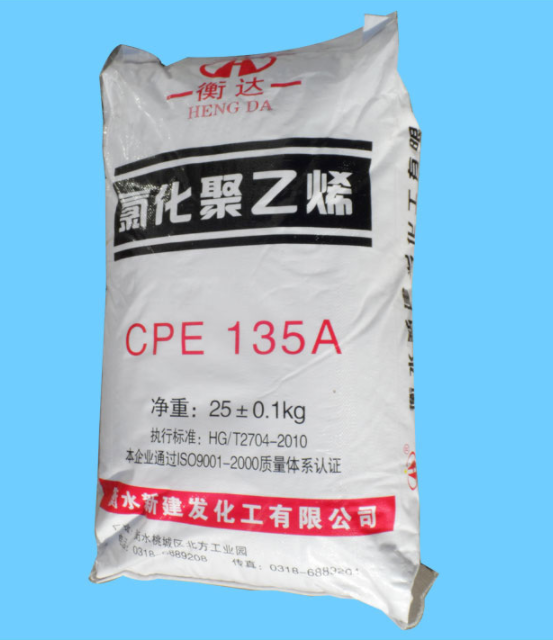 中文名:氯化聚乙烯 英文名称:Chlorinated Polyethylene 结构式:[ CH2-CHCl-CH2-CH2 ]n 英文简称:CPE 或CM 氯化聚乙烯(CPE)为饱和高分子材料,外观为白色粉末,无毒无味,具有优良的耐侯性、耐臭氧、耐化学药品及耐老化性能,具有良好的耐油性、阻燃性及着色性能。韧性良好(在-30℃仍有柔韧性),与其它高分子材料具有良好的相容性,分解温度较高,分解产生HCl,HCL能催化CPE的脱氯反应。 氯化聚乙烯是由高密度聚乙烯(HDPE)经氯化取代反应制得的高分子材料。根据结构和用途不同,氯化聚乙烯可分为树脂型氯化聚乙烯(CPE)和弹性体型氯化聚乙烯(CM)两大类。热塑性树脂除了可以单独使用以外,还可以与聚氯乙烯(PVC)、聚乙烯(PE)、聚丙烯(PP)、聚苯乙烯(PS)、ABS等树脂甚至聚氨酯(PU)共混使用。在橡胶工业中,CPE可作为高性能、高质量的特种橡胶,也可以与乙丙橡(EPR)丁基橡胶(IIR)、丁腈橡胶(NBR)、氯磺化聚乙烯(CSM)等其它橡胶共混使用。特征:1) CPE是一种饱和橡胶,有优秀的耐热氧老化、臭氧老化、耐酸碱、化学药品性能。 2)CPE耐油性能优秀,其中耐ASTM 1号油、ASTM 2号油性能极佳,与NBR相当;耐ASTM 3号油性能优良,优于CR,与CSM相当。 3)CPE中含有氯元素,具有极佳的阻燃性能,且有燃烧防滴下特性。其与锑系阻燃剂、氯化石蜡、Al(OH)3三者适当的比例配合可得到阻燃性能优良、成本低廉的阻燃材料。 4)CPE无毒,不含重金属及PAHS,其完全符合环保要求。 5)CPE具有高填充性能,可制得符合各种不同性能要求的产品。CPE的加工性能好,门尼粘度(ML121 1+4)在50-100间有多种牌号可供选择。 氯化聚乙烯的应用范围 主要应用于:电线电缆(煤矿用电缆、UL及VDE等标准中规定的电线),液压胶管,车用胶管,胶带,胶板,PVC型管材改性,磁性材料,ABS改性等等。